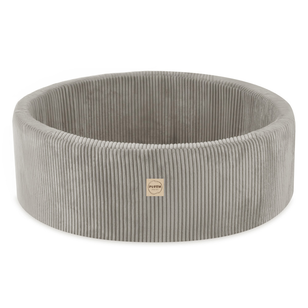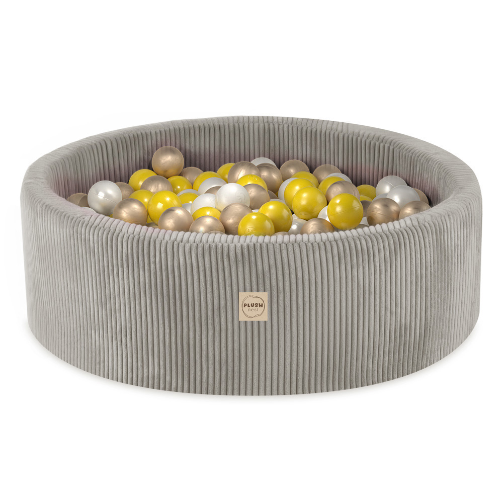 PLUSH NEST Spielplatz 3-teilig + Trockenbecken 90×30 (+200 Bälle: Perlmutt, Gold, Gelb), Beige, Premium-Cord