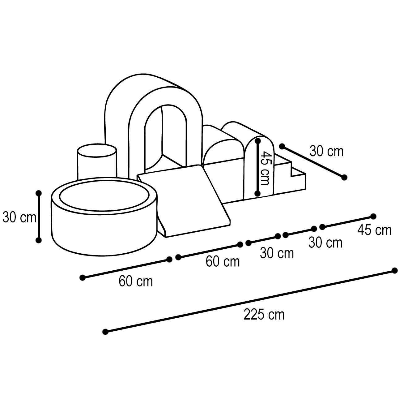 Das Schloss ist mehr als nur ein Spielplatz – es ist ein Ort, der Kleinkinder zum aktiven Spielen und Entdecken anregt. Sie können sich wie kleine Könige und Königinnen im Haus verstecken, während das Bällebad sie dazu einlädt, in ein Meer aus Farben einzutauchen und so ihre motorischen Fähigkeiten und ihre Koordination zu entwickeln.