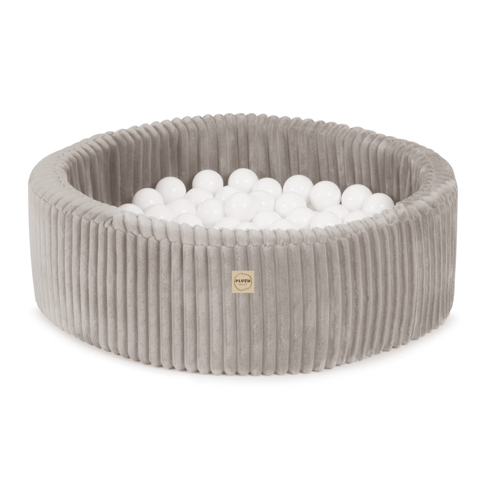 PLUSH NEST Trockenplanschbecken, rund 90×30 cm, Beige – Flauschiges Lamellen-Kinderbecken