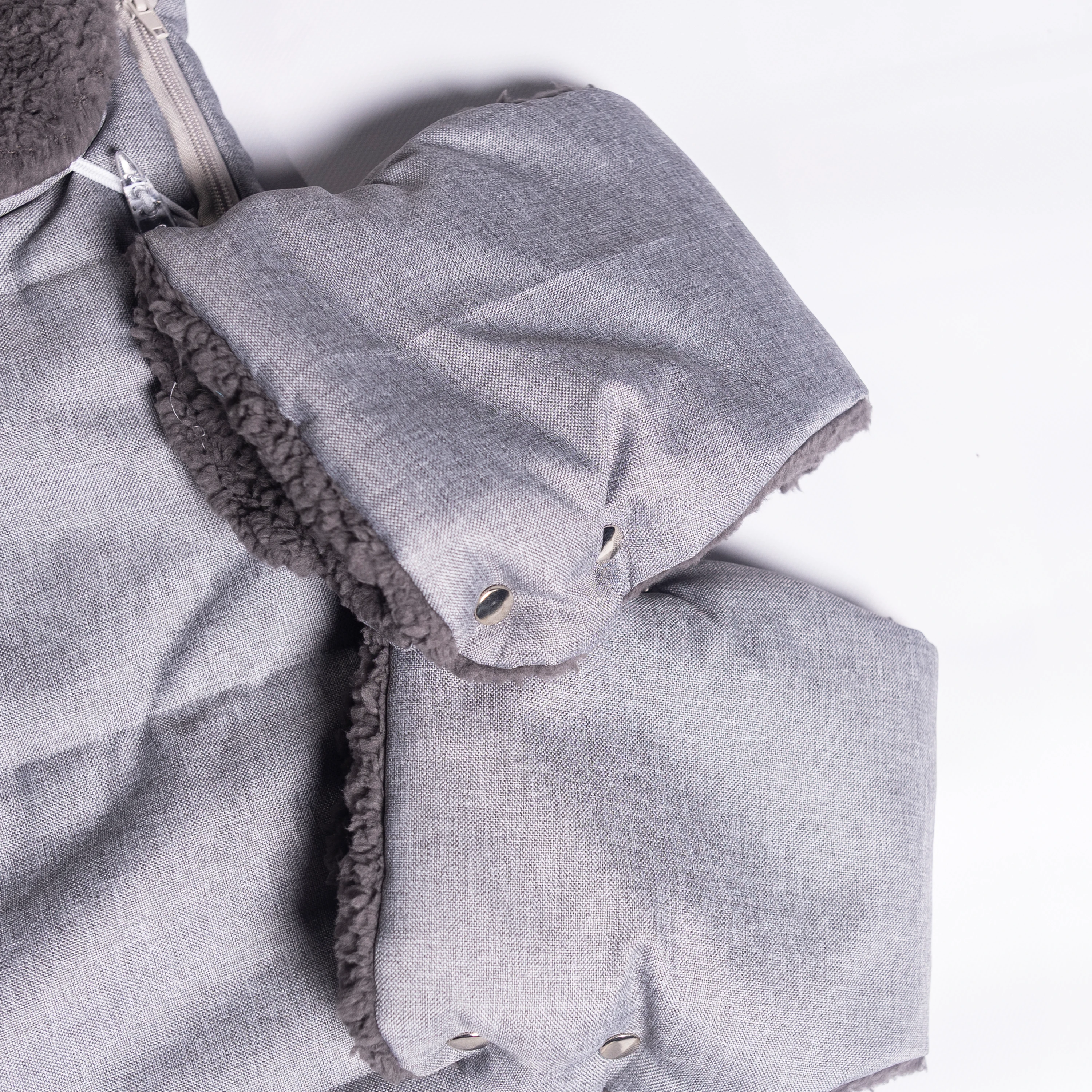 Produktinformationen "Warmer Winter Fußsack / -Schlafsack für Kinderwagen mit Handschuhen oder Schlitten, grau meliert TEDDY Graphit 110 cm"