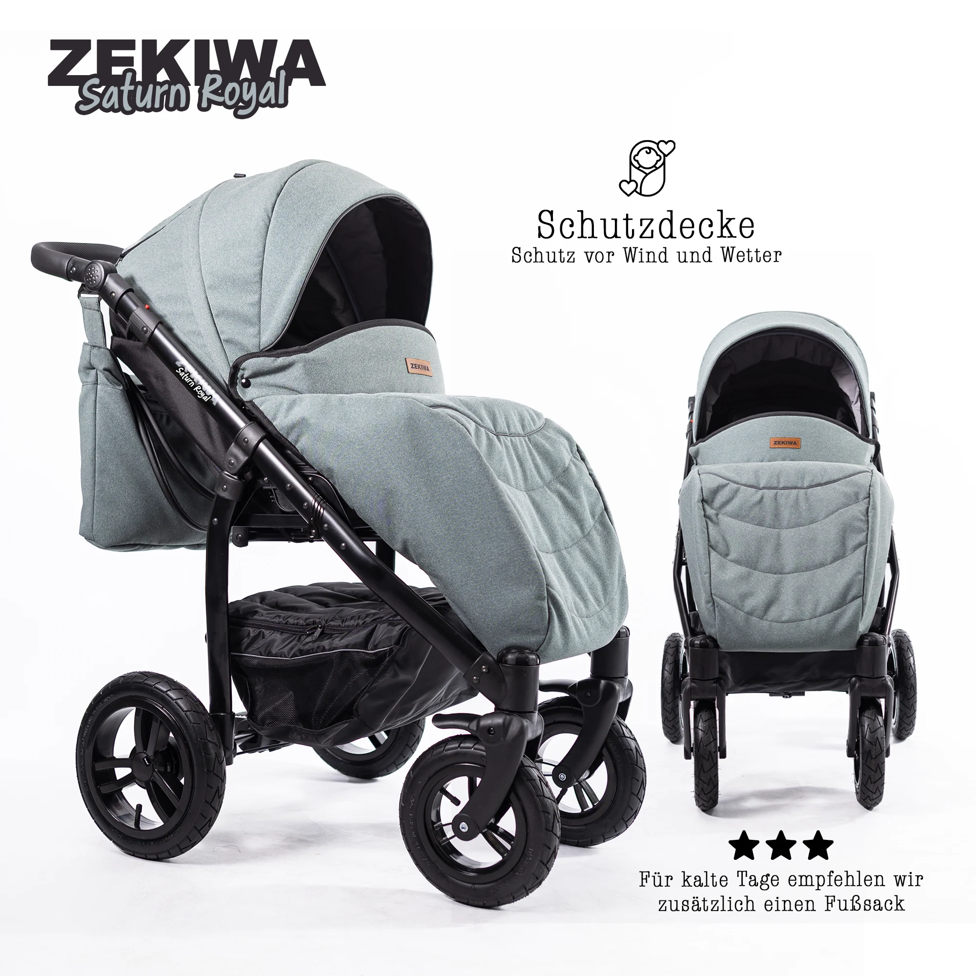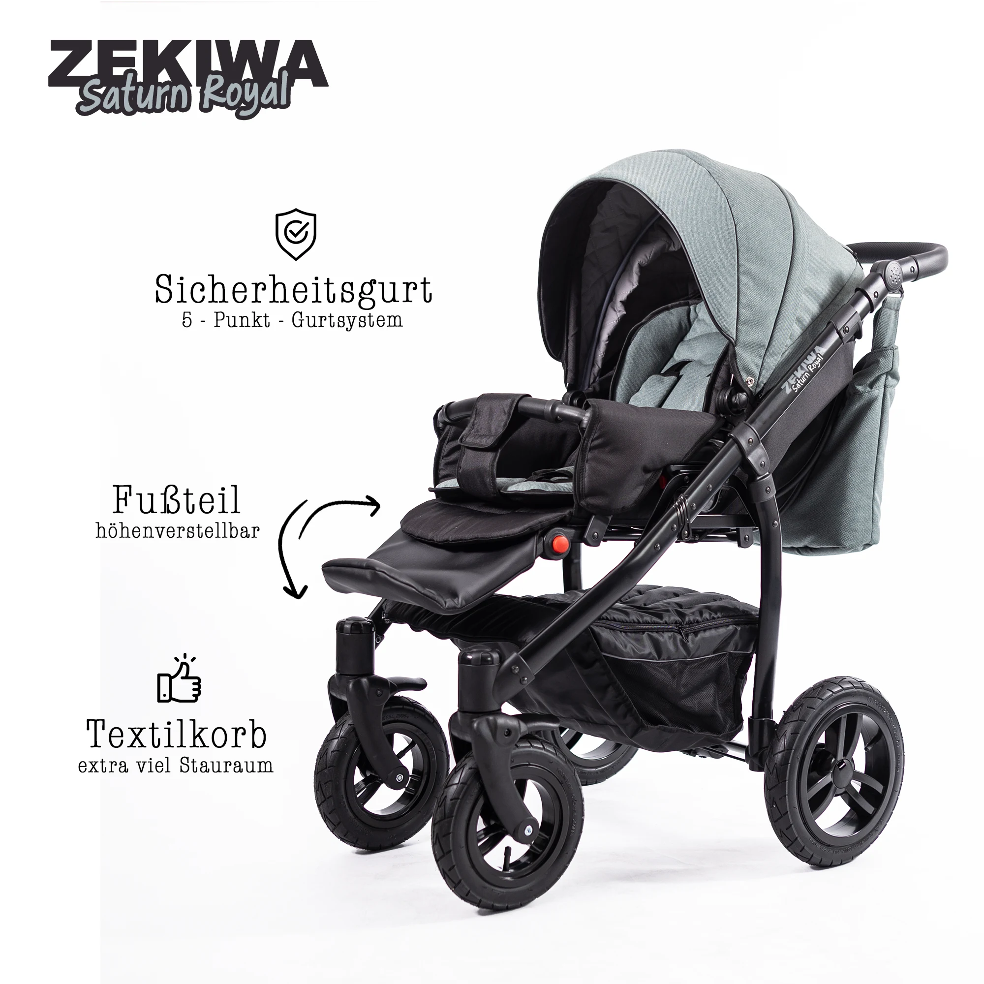 Produktinformationen "ZEKIWA Kinderwagen 3 in 1 mit 81cm XL Liegefläche - Komplettpaket + Sportwagenaufsatz + Regenschutz + Insektenschutz + Wickeltasche | Saturn Royal"