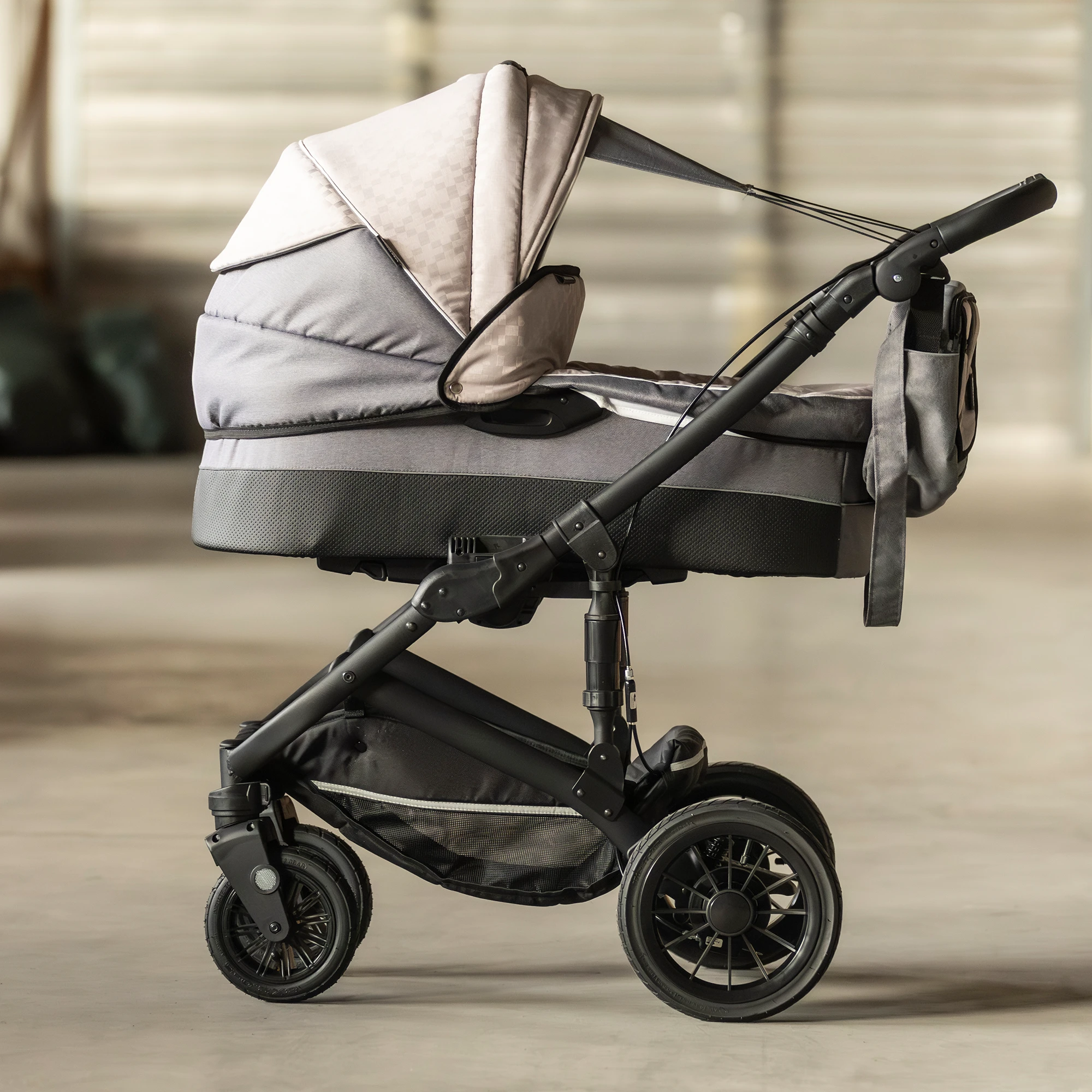 Die Sonderedition überzeugt vor allem durch ihr spezielles Gestell mit Handbremse direkt am Griff, was im Alltag für zusätzlichen Komfort und mehr Kontrolle sorgt. In Verbindung mit der mehrstufigen Federung bietet der Kinderwagen ein besonders angenehmes Fahrgefühl – auch auf unebenen Wegen und unterschiedlichen Untergründen.