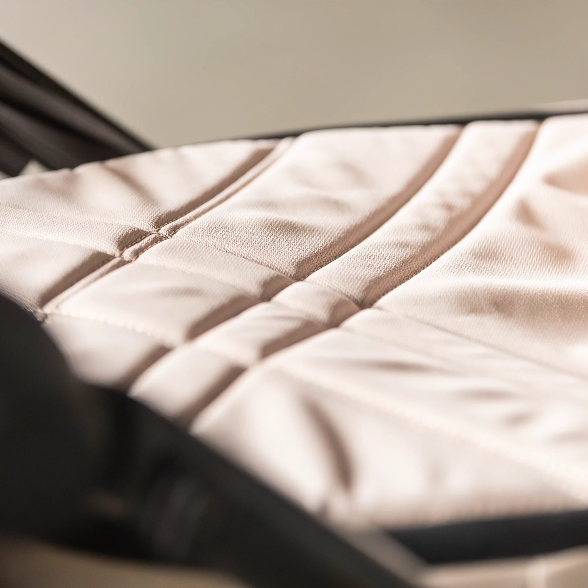 Alle verwendeten Textilien sind hochwertig, zertifiziert und abnehmbar sowie waschbar, was eine einfache Pflege ermöglicht.