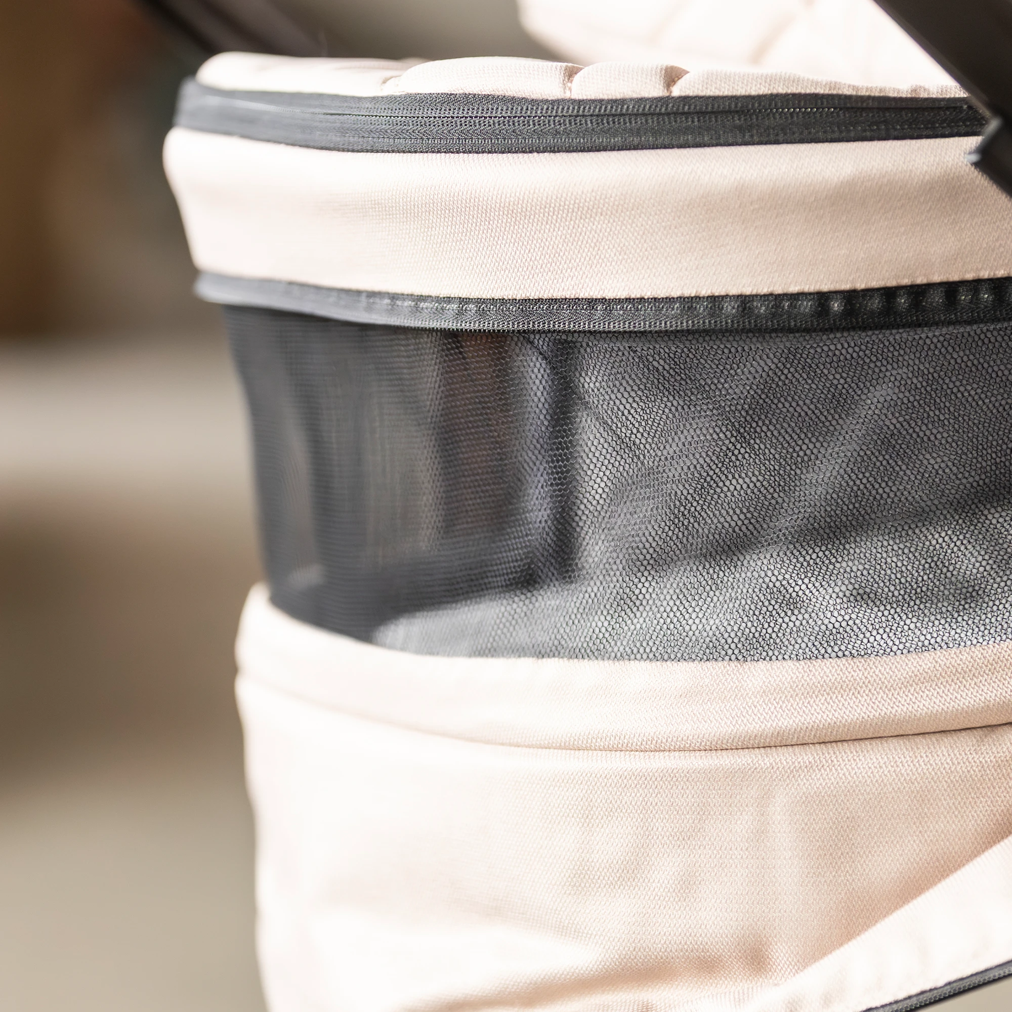 Die Rückenlehne ist 4-fach verstellbar und das Fußteil lässt sich individuell anpassen. Das Verdeck verfügt über ein Sicht- und Gazefenster zur optimalen Belüftung.