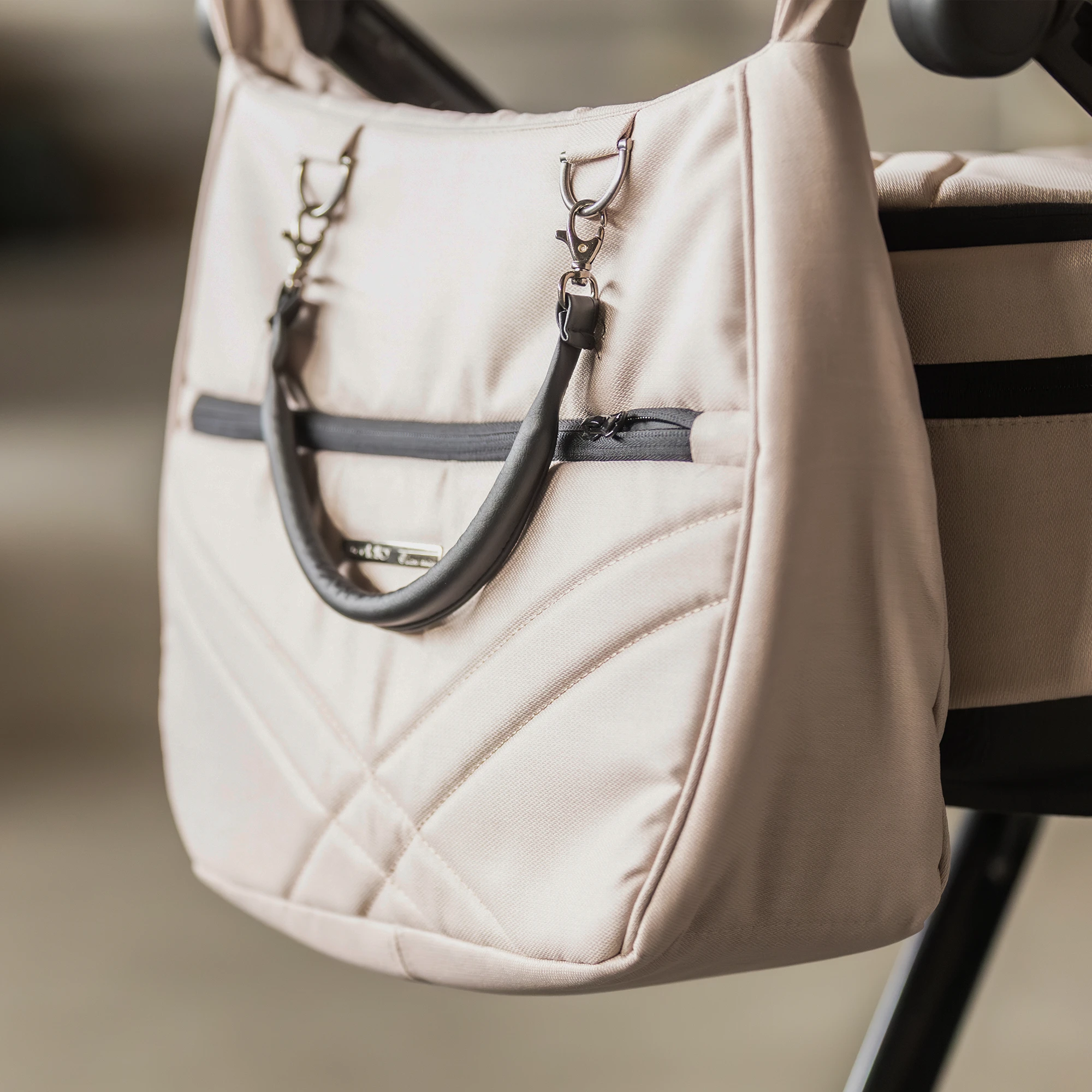 Zum Lieferumfang gehört eine Wickeltasche mit mehreren Fächern für alle wichtigen Utensilien. Zusätzlich sind ein Regenschutz sowie ein Insektenschutz enthalten.