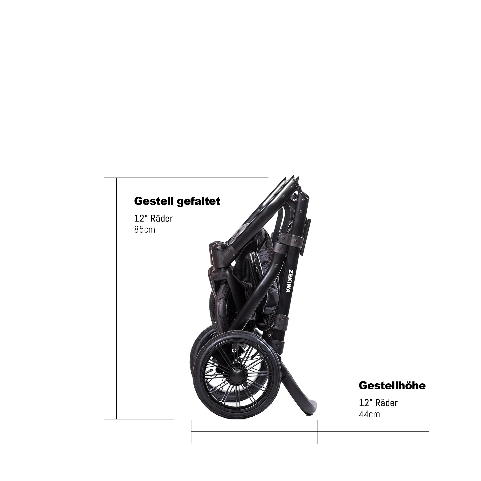 - Gestell zusammengefaltet: 85x63x30 cm (L/B/H)