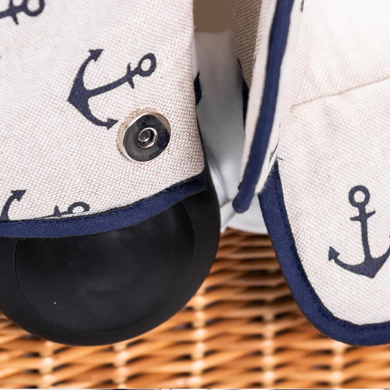 Der hochwertige Stoff mit Anker-Muster ist OEKO-TEX® STANDARD 100-zertifiziert, wasserabweisend, fleckenabweisend und besonders robust. Damit bist du bei jedem Wetter und auf jedem Terrain bestens ausgestattet.