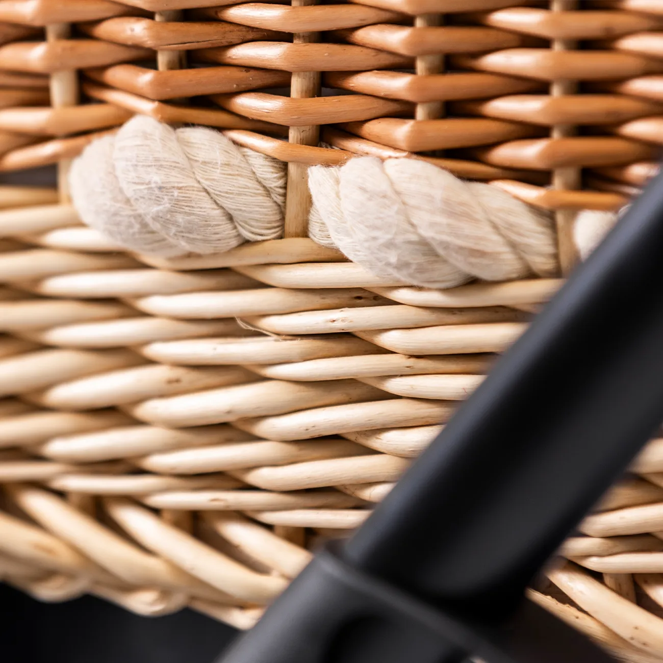 Großer Textilkorb im unteren Bereich des Gestells – ideal für Einkäufe oder Babyutensilien
